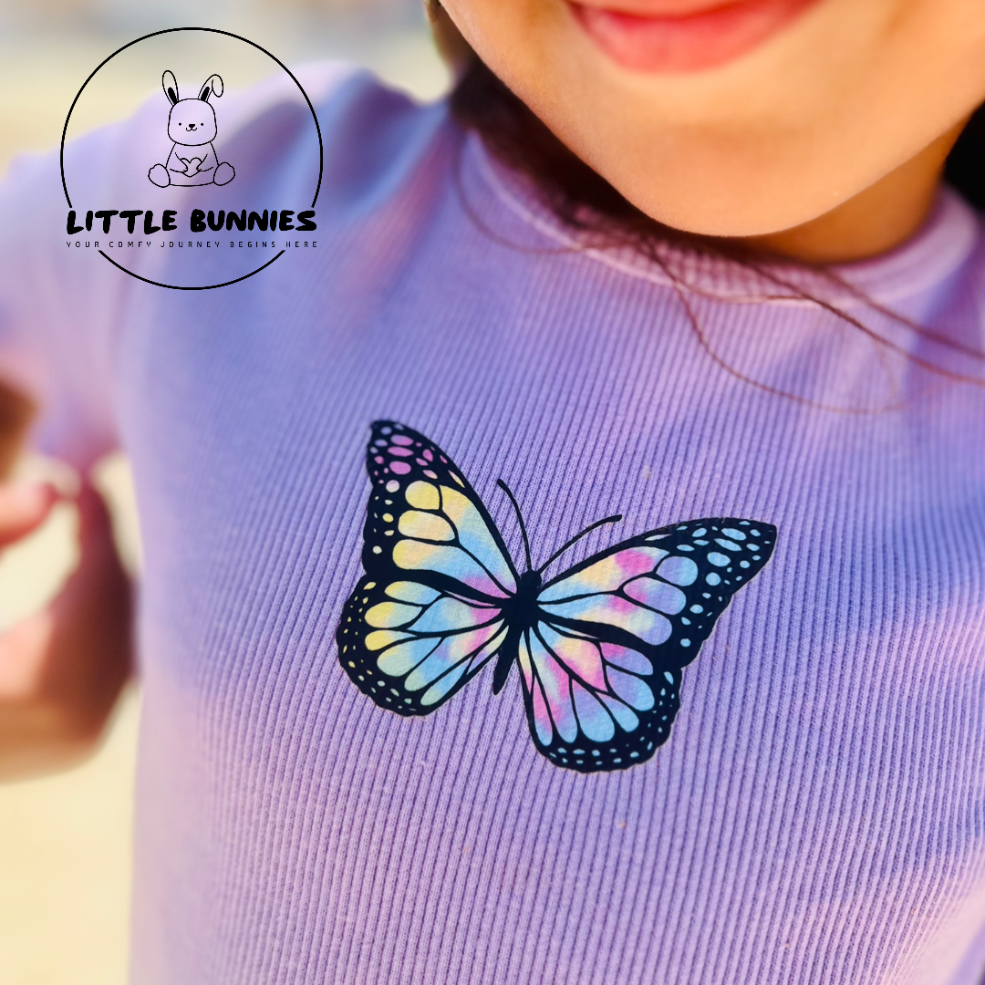 Lilac Ribbed Cotton Girls T-shirt